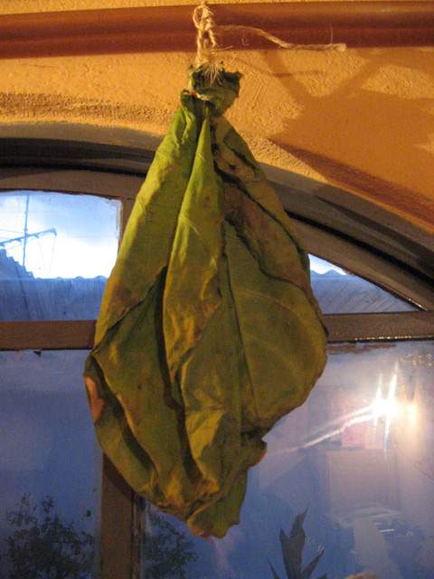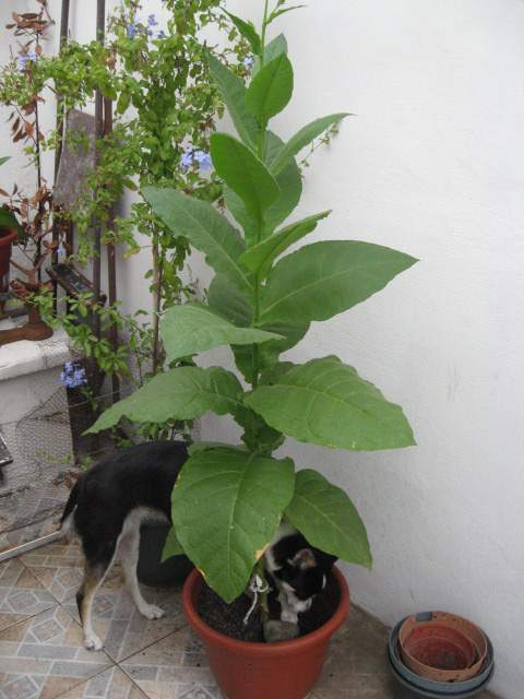Plantar tabaco casero en Montevideo el año pasado y cosecharlo en este ha sido una entretenida aventura que requirió dedicarle mucho tiempo; dias nublados cuando lo normal de acuerdo a la estación deberían ser soleados, algunos de sol muy intenso al mediodia que pudieron haber deteriorado las hojas, cambios bruscos de temperatura, dias con temperaturas bastante más bajas que lo normal para la época, muchos dias lluviosos, algunos excesivamente lluviosos, vientos, tormentas, que obligaron a llevar las macetas de un lado a otro de la terraza para proteger las plantas.