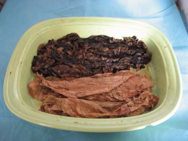 Se retiró la vena central de las hojas. Luego de aplicado los casings y saborizantes el tabaco fue mantenido
