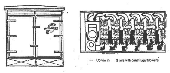 curado para el tabaco Bright. Las hojas se suspenden en una atmósfera de curado a granel en manojos orientados