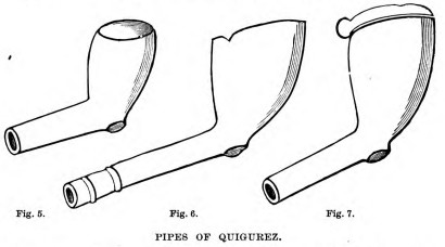 En un relato sobre las forjas primitivas del Jura bernés, publicado por M. A. Quiguerez," se alude a las pipas, entre otras antigüedades, "qu'on a cru inconnues dans l'antiquité, mais qui se trouvent trop nombreuses dans les habitations gallo-romaines, pour pouvoir actuellement en nier l'existence ou l'emploi dans ces temps reculés." Continúa: "Hay muchos de ellos en el museo de Avenches, en el de Porrentruy y en Montbéliard. Hemos encontrado tres de ellos, con algunos objetos muy característicos. Son todas de hierro, muy pequeñas, y exactamente de la forma de nuestras pipas de yeso... Una tiene todavía su tapa. La misma forma se empleaba a principios del siglo XVII, como hemos comprobado al exhumar el cuerpo de un guardia suizo, quemado en 1637. Pero las pipas de esa época eran de terracota. La fig. 5 procede de un puesto militar romano o galo-romano, cerca de las murallas de Liesberg, a una distancia de unos cien pies del emplazamiento de una fragua. "La fig. 6 fue encontrada en Delémont, con algunos restos galo-romanos, y la fig. 7 en Develier, con algunos hermosos fragmentos de jarrones de arcilla rojiza, en las ruinas romanas.
