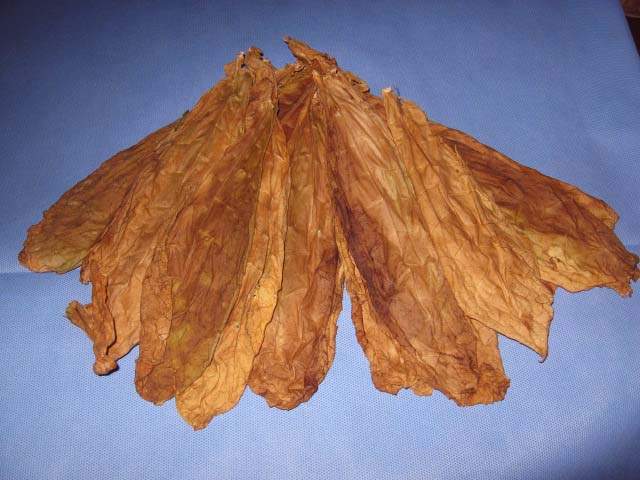 La leña a medio quemar o "tea de fuego" mencionada por Las Casas, y otros historiadores, era "una especie de musquetoon empacado de una hoja seca, que los indios encendían por un extremo mientras lo chupaban o inhalaban por el otro. Estos musquetoons se llamaban Tabacos".