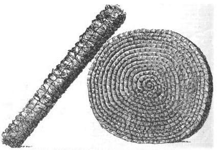 En este caso, la parte dañada se corta con cuchillos largos y afilados, y el impuesto se aplica sólo al tabaco sano. Todo el tabaco sobre el que no se paga el impuesto se consume en un horno en los muelles, que se conoce popularmente como la "pipa del tabaco de la reina". Cuando se abre el tabaco en las fábricas, se encuentra, por supuesto, muy comprimido, y las capas se aflojan mediante palancas. A continuación, se rocía agua sobre ellas, lo que hace que las hojas se hinchen y se separen más fácilmente. Los siguientes procesos son los de despojar el interior de la hoja, o cortarla en tiras de diversas maneras, para producir los numerosos tipos de tabaco, cada uno de los cuales tiene sus propios admiradores. Las diferentes tribus nativas de diversas partes del mundo tienen también sus propias formas de preparación, de las cuales se ilustran dos de África Central.
