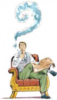 | "M. Triggs fumaba rabiosamente, y la pipa, como activada por