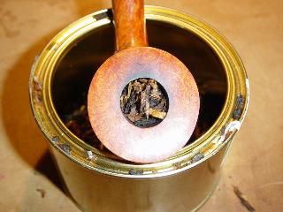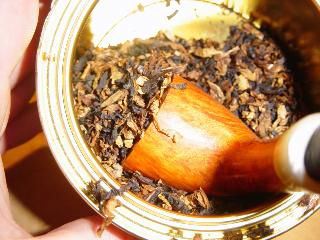 a lo que estamos acostumbrados. Use alternativamente las yemas del pulgar derecho e izquierdo. Por otra parte debes ir haciendo girar la cazoleta en un movimiento circular para lograr distribuir el tabaco equitativamente. Esto hará como que el tabaco cuelga por los bordes de la cazoleta hasta que la pipa esté llena. En este momento puedes recortar el exceso de tabaco si ves que hay demasiado en la carga. |