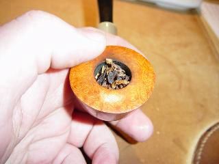 Si has terminado el paso previo correctamente, tu pipa debe parecerse a esto, con el tabaco cargado por gravedad y la cazoleta llena hasta arriba. |